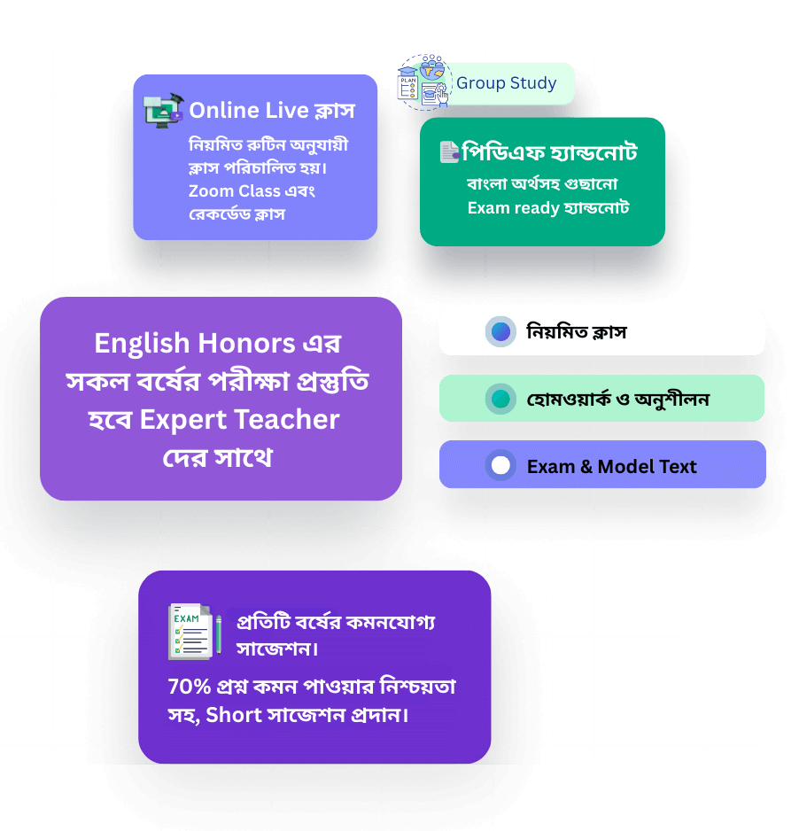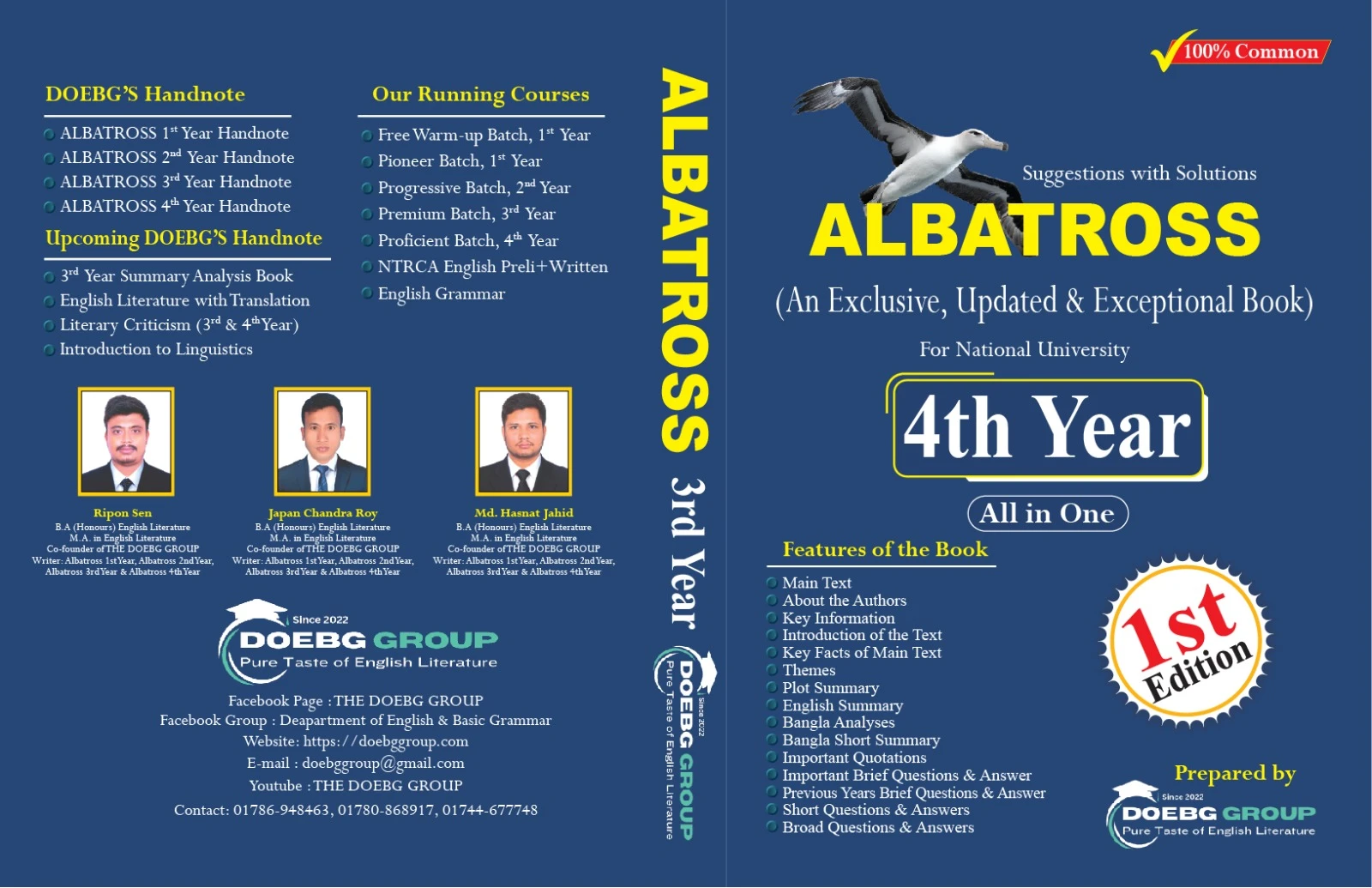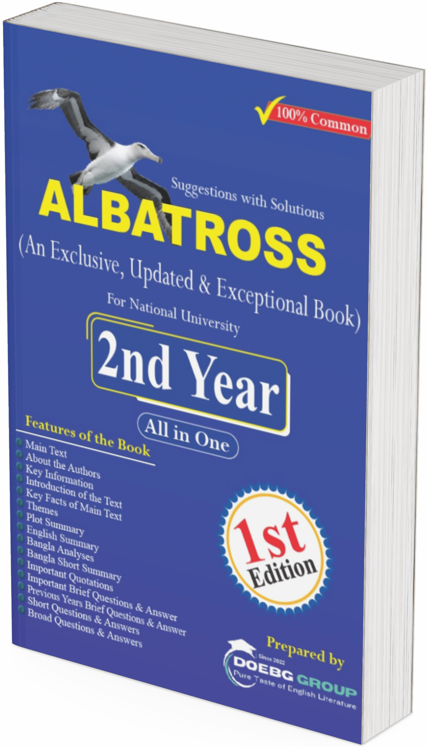 English Honours (National University) শিক্ষার্থীদের জন্য DOEBG GROUP-এর নিজস্ব প্রকাশিত বই Albatross এখন সহজে আপনার হাতের মুঠোয়। প্রতিটি কোর্সের সিলেবাস অনুযায়ী সাজানো এই বইগুলোতে রয়েছে সহজ ভাষায় ব্যাখ্যা, প্রয়োজনীয় ব্যাকগ্রাউন্ড তথ্য, প্রশ্নোত্তর এবং পরীক্ষাভিত্তিক গাইডলাইন। শিক্ষার্থীদের বাস্তব চাহিদা ও সফলতার কথা মাথায় রেখে তৈরি করা হয়েছে Albatross সিরিজ।